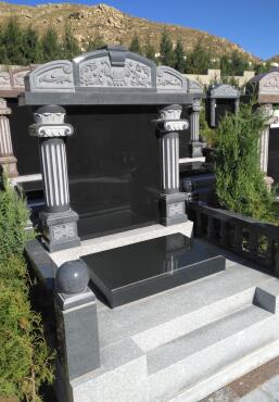 寓意:欄板和基礎(chǔ)猶如一個(gè)庭院,碑頂是一簇茂盛的花藤,象征著美滿、和諧。適用于恩愛(ài)夫妻,子孫滿堂的高壽老人