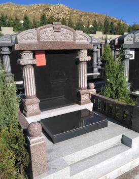 寓意:欄板和基礎(chǔ)猶如一個(gè)庭院,碑頂是一簇茂盛的花藤,象征著美滿、和諧。適用于恩愛(ài)夫妻,子孫滿堂的高壽老人